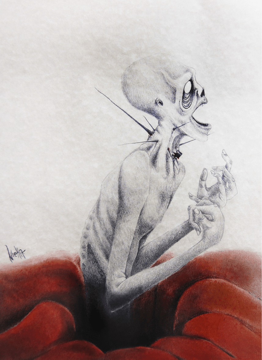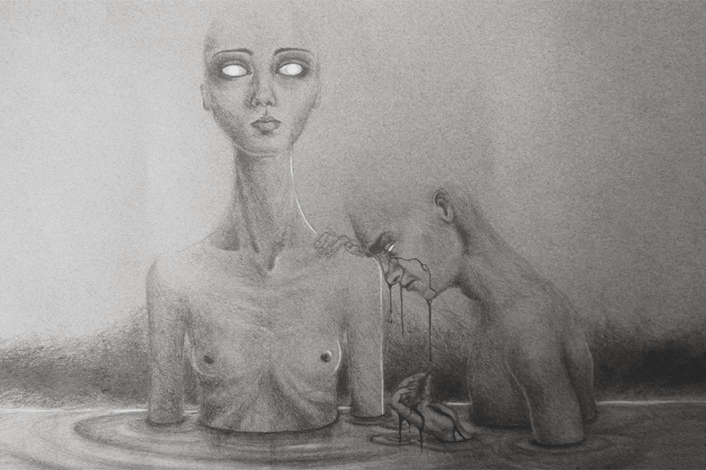 En esta exposición nos muestra un poco de sus emociones personales, introspección exteriorizada al dibujo con uso de materiales; grafito, carboncillo y pasteles.