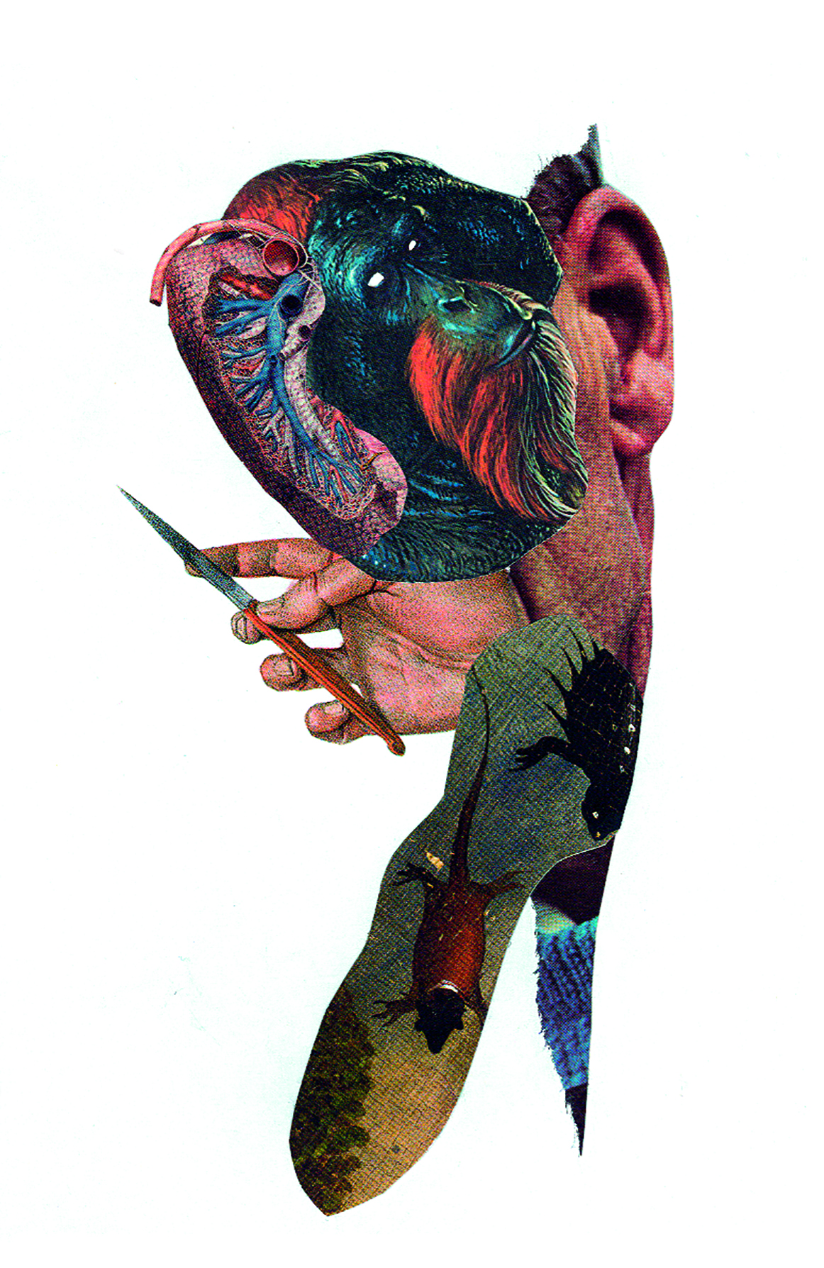 Antagónica Furry, es una collagista boliviana que tiene conectado el ritmo de una mente afilada a las ya de por sí afiladas tijeras. No duda en destruir imágenes para reconfigurar otras realidades. Después de todo, el collage como disciplina, es un acto de iconoclasia. Este acto es más palpable en el collage analógico, pues hay una participación más directa del cuerpo y de la danza apasionada del artista. Sus obras son entonces, un flujo de movimientos que han alcanzado reflejar paisajes dadaistas, escenas viscerales acompañadas de un humor de acceso selecto, miradas esquivas, y escenas que -amparándose en el cadáver desmembrado de antiguos clásicos- logran movilizar la imaginación hacia una paralela Historia del Arte. En Antagónica Furry, goza de buena salud el signo de una obra que dentro de su complejidad experimental (y antagonizando con un collage arbitrario, efectista o fácil al tema en boga), es capaz de dejar en claro la presencia de una tesis inteligente habitando en el lienzo maduro.