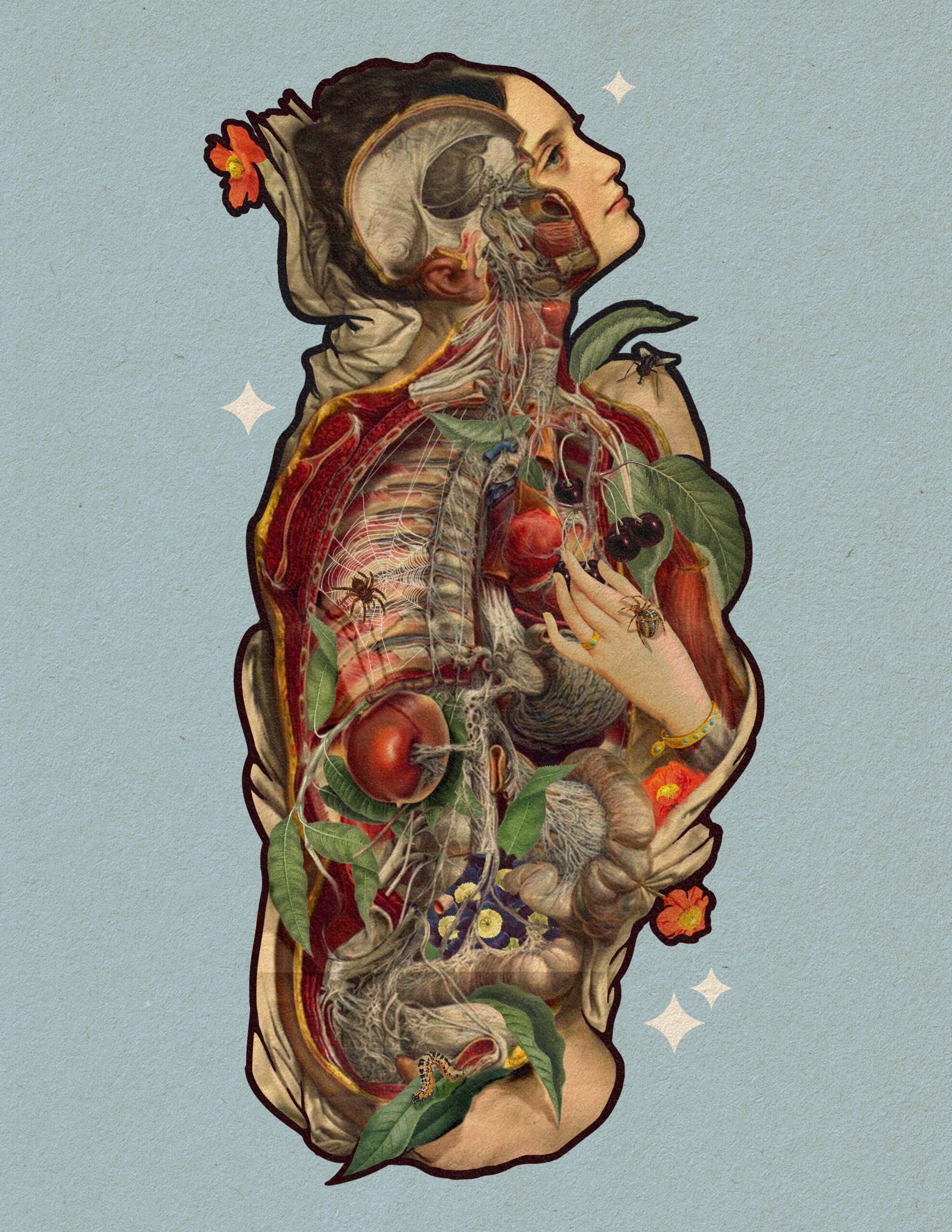 La serie “Flower Power” Surge como una necesidad e interés desde el autodescubrimiento, desde la metáfora del florecimiento, la búsqueda de lo femenino que considero latente desde una posición que me identifica como masculino. Por ello, utilizo elementos que no son considerados propios de mi género, buscando trabajar con elementos que en la conciencia social no son propias del hombre, por ejemplo, las flores y las ornamentaciones, en conjunción a lo que es lo real y fantástico, no como un símil de lo frágil o delicado: así, el lugar de enunciación en mi trabajo se basa en conceptos como lo son la pérdida, la estabilidad, la homeóstasis, la transformación, el deseo y la alegoría desde la figura femenina, no como una forma de sexualización, sino todo lo contrario una forma de empoderamiento.
